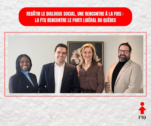 Despite this, union leaders seem to only have their eyes on the upcoming elections, hoping that the next government will not repeat the CAQ attacks. The CSN is currently lobbying other political parties. Its campaign “Take a stand for Quebec” aims, among other things, to “elect a government that spends less time strutting around with the bosses” and stresses the need to “get the support of other parties.” In the same perspective, Magali Picard also stated that in order to have the recent laws of the CAQ repealed, “The only opportunity we have is that we have elections in 10 months.” On March 30, representatives from the FTQ, CSN, CSQ, and FAE unions met with Charles Milliard, the new leader of the Liberal Party—the traditional party of the bosses of Quebec. Astonishing!