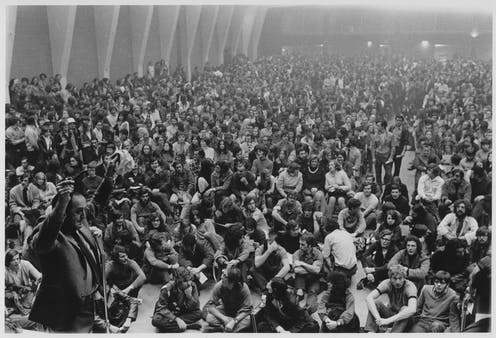 For a brief moment, the FLQ’s strategy seemed to be working. Charles Gagnon and Pierre Vallières toured student circles. On the 14th, Charles Gagnon addressed an assembly of students at UQAM and called for a strike. On the 15th, students from several CEGEPs and faculties at UQAM and UDEM went on strike to demand the release of political prisoners. In the evening, 3,000 people gathered at the Paul Sauvé Arena to hear Gagnon and Vallières, in addition to Michel Chartrand and lawyer Robert Lemieux, who was leading the negotiations with the government. The crowd chanted “FLQ! FLQ! FLQ!”