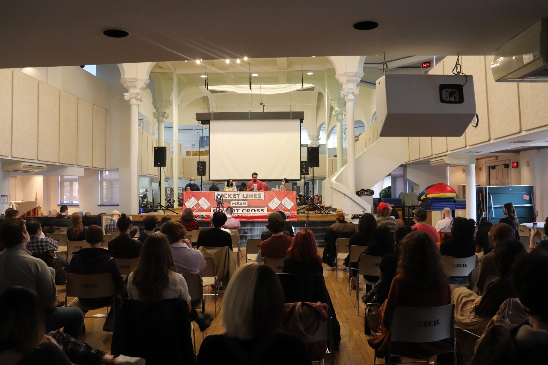 On Apr. 23, the Picket Lines Mean Do Not Cross campaign organized its launch meeting in Toronto, at Cecil Community Center. The event was a massive success, hosting 100 attendees from many different union locals in the city. The mood in the room was electric, with rank and file workers eagerly contributing in the discussion about the need to support strike action. There were workers present from many unions across the city, including CUPE 4400, Workers United, ATU 113, CUPW, as well as some workers from the IBEW (International Brotherhood of Electrical Workers) who are currently on strike at Union GO bus station.